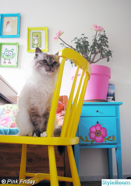 Fiquei de olho também na cômoda turquesa e a mesinha amarela não tem um gatinho rs mas é linda também.